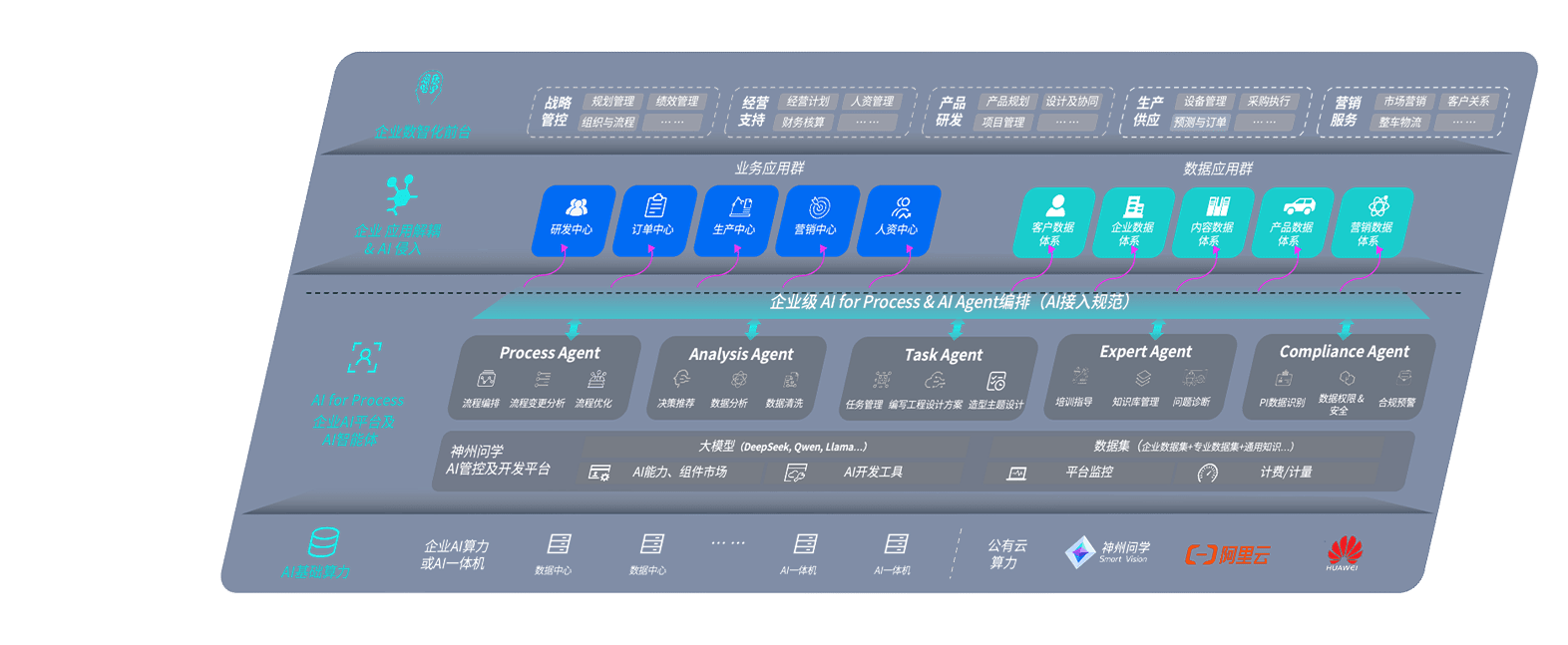 巨星国际问学智车解决方案是一套基于AI技术的汽车行业智能化系统,,,,覆盖从底层算力到顶层AI应用的全栈方案。。。。方案由算力层、、、模型层和应用层组成:算力层,,,,方案支持多种一体机配置,,具备云端灵活部署、、、多云适配以及动态优化计算资源的能力;模型层,,,,巨星国际问学平台版提供了企业级AI应用一站式构建与管理平台,,,,支持基于后训练强化技术的汽车企业专属模型的训练、、、评测和运营;应用层,,巨星国际问学DeepSeek版提供包括超级员工、、、智能招采、、、、智能营销、、智能客服、、AI for BI等一系列解决方案,,,可助力汽车行业实现数字化转型,,,,让管理更智能、、响应更敏捷。。。